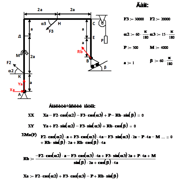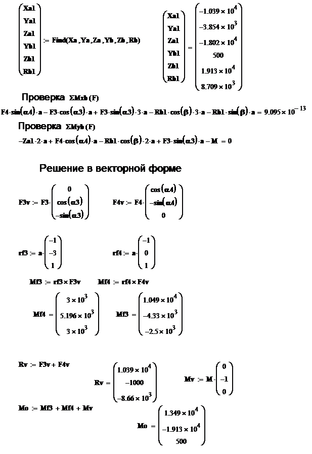 М=4кН*м и две силы, значение которых, а также точки их приложения и направления