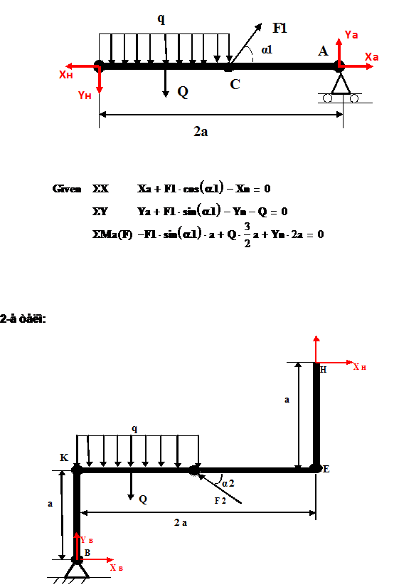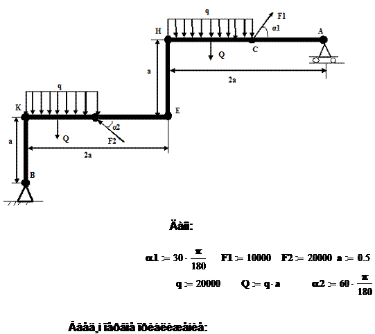 кН, q=20кН/м, угол α1=30