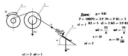 система состоит из тел 2, 4 весом Р2, Р4, соответственно, связанных друг с