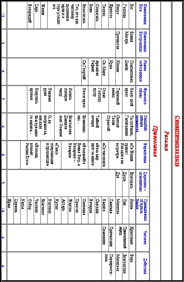 лексических единиц, относящихся к семантическому полю с архилексемой «религия».