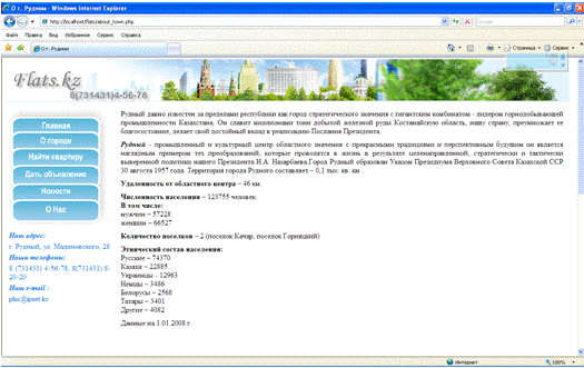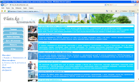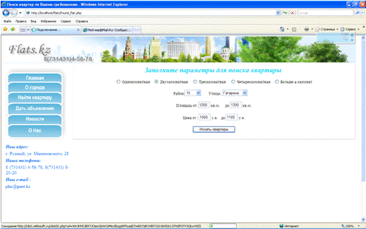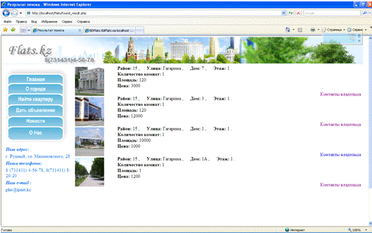 «Найти квартиру» появляется страница, на которой отображены данные отобранных