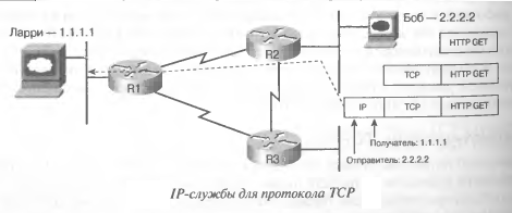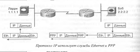 Чтобы отправить пакет узлу Ларри, Боб пересылает пакет маршрутизатору R2. Чтобы доставить пакет до