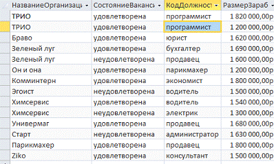 таблице «Должности» тип поля код_Должности текстовый, а в таблице «Вакансии»