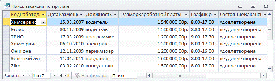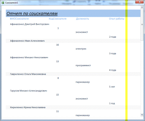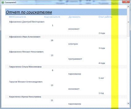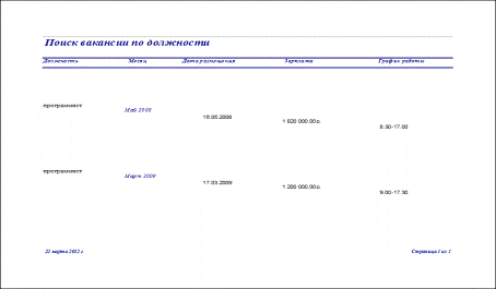 Рисунок 3.12 - Отчет по поиску вакансии по