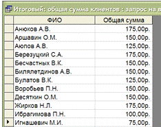 Рисунок 9 - Запрос "Итоговый: общая сумма клиентов"