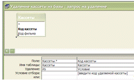Рисунок 15 - Запрос "Удаление кассеты из базы"