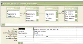 возврат" по полю "Код кассеты", появится связь между таблицами