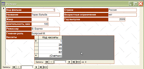 Затем свяжем таблицы "Фильм" и "Кассета"