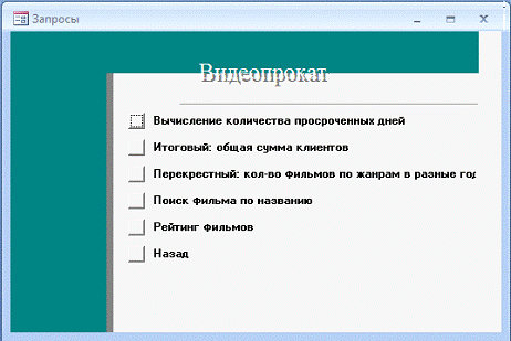 Готовая кнопочная форма разработанной базы данных имеет вид,