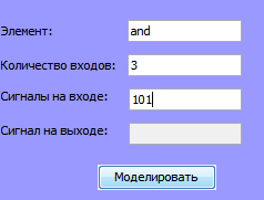 моделируемого логического элемента в зависимости от подаваемых на его входы