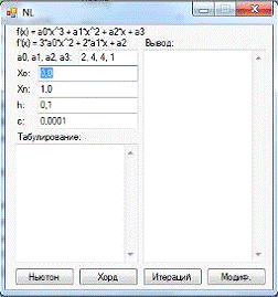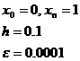 ) Введите данные в поля “a0, a1, a2, a3”, “Xo”, “Xn”, “h”, “ε”