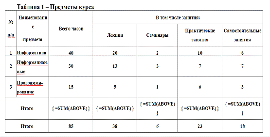 необходимые параметры. Если таблица содержит цифровые данные, то по итоговой