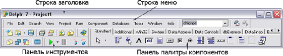 После загрузки интерфейс Delphi 7 имеет вид, показанный на рис. 1, и