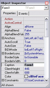 Любой размещаемый на форме компонент характеризуется некоторым набором