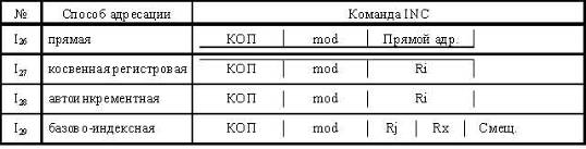 регистровая, автоинкрементная, базово-индексная.