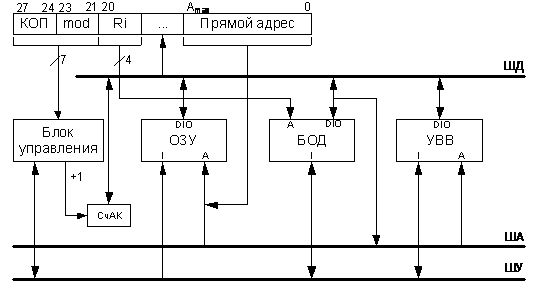 микропрограммы. Вычисленный адрес загружается в Рг. А и снова в счетчик команд.