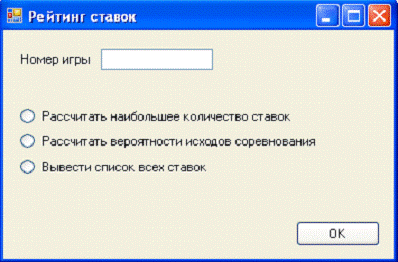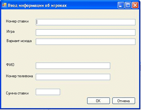 на разработку системы учета ставок в букмекерской конторе, предназначенной для