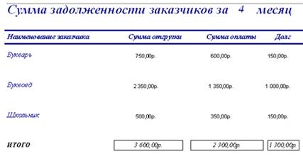 В результате отчет по задолженностям заказчиков