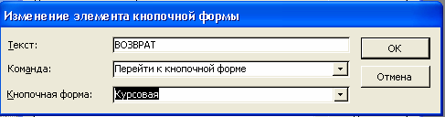Сформировать в окне Изменение элементов кнопочной формы элемент для формы