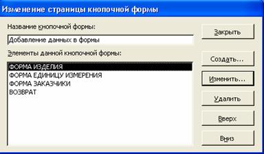 Изменить. В окне Изменение страницы кнопочной формы создать ее элементы с