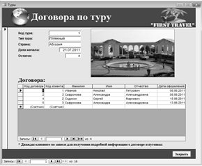 осуществляется просмотр фотографии тура. Желательно, чтобы в одной из таблиц