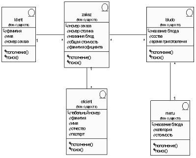 Официант: табельный номер, фамилия, имя, отчество, паспорт.