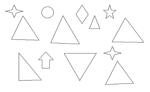 На входе изображения фигур на белом фоне, цвет линий черный. Фигуры не