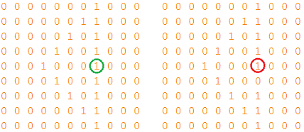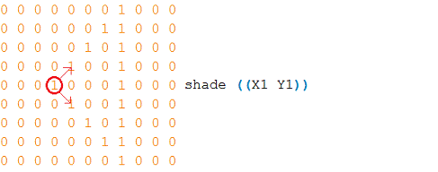 координатам всех точек в нулевую матрицу записываются единицы. Обновленная