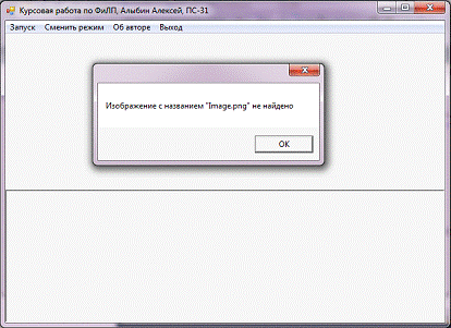 Если при запуске программы файл с изображением не найден, то срабатывает