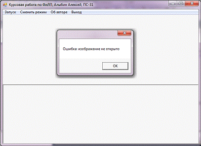 исключение и выводится соответствующее сообщение об ошибке «Изображение с