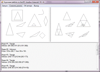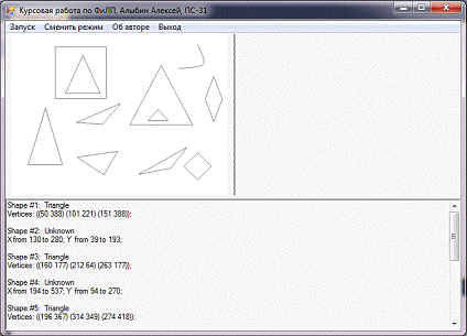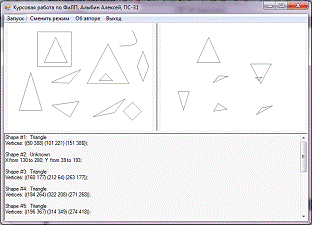 Информация о распознанных фигурах выводится в текстовый файл. Если