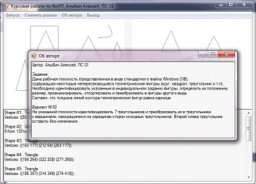 обнаруженная фигура является треугольником, то выводится список его вершин,