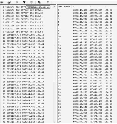 работы. Нам были представлены некоторые данные из топогеодезической съемки.