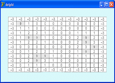 for row :=0 to MR+1 docol :=0 to MC+1 do[row,col] := -3;();