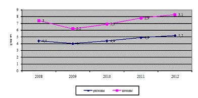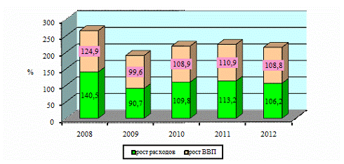 расходов госбюджета и ВВП в 2008 - 2012 годах, показан на рисунке 3.