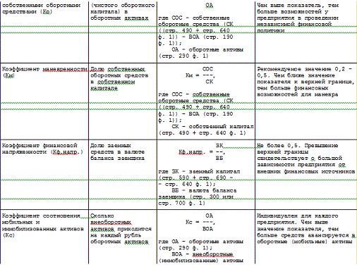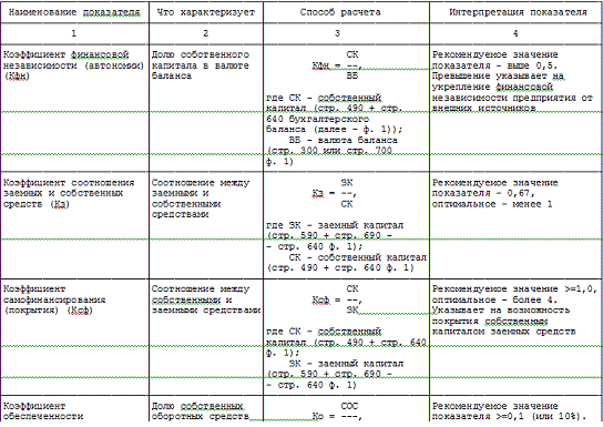 сформулирована в Инструкции по анализу и контролю за финансовым состоянием и