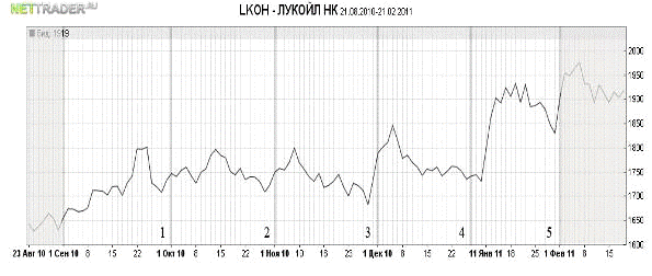 «Лукойл» за последние 5 месяцев (с 1.09.2010 по 1.02.2011) определяем ожидаемую