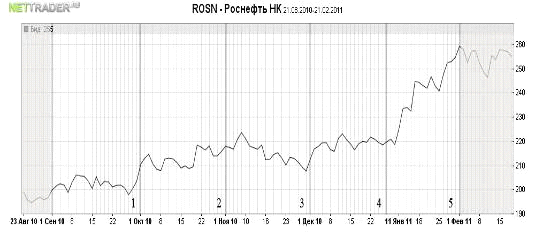 «Роснефть» за последние 5 месяцев (с 1.09.2010 по 1.02.2011) определяем