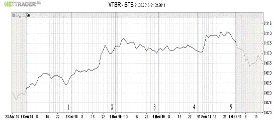 Банк ВТБ за последние 5 месяцев (с 1.09.2010 по 1.02.2011) определяем ожидаемую