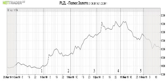 «Полюс Золото» за последние 5 месяцев (с 1.09.2010 по 1.02.2011) определяем