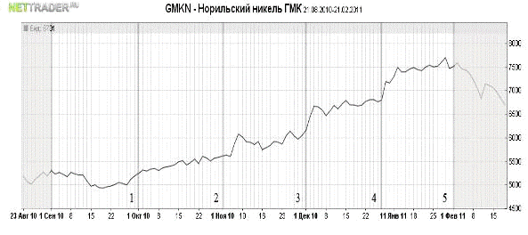 «ГМК Норильский никель» за последние 5 месяцев (с 1.09.2010 по 1.02.2011)