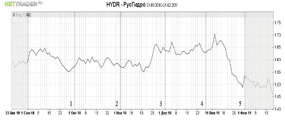 «РусГидро» за последние 5 месяцев (с 1.09.2010 по 1.02.2011) определяем