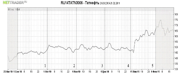 «Татнефть» за последние 5 месяцев (с 1.09.2010 по 1.02.2011) определяем