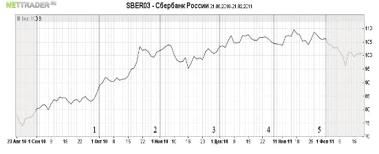 Сбербанка России за последние 5 месяцев (с 1.09.2010 по 1.02.2011) определяем