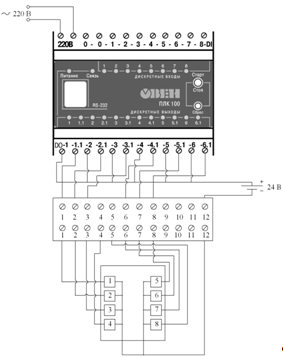 Рис. 2.2 схема подключения ПЛК-100 и робота