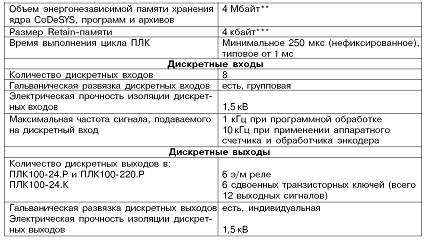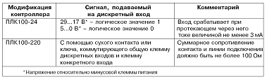 контроллера ПЛК100 приведены в таблицах 2.1, 2.2, 2.3.