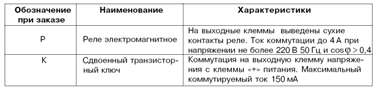 характеристики входных сигналов и характеристики встроенных выходных элементов