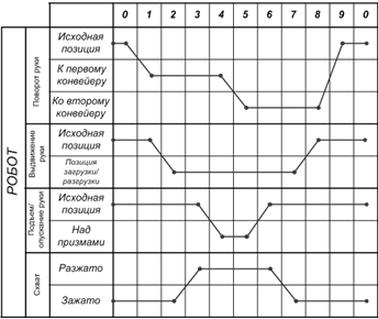 анимационную картину цикла работы робота, фрагмент которой показан на рис.