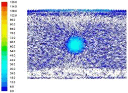 .3 Распределение вектора скорости в рабочем пространстве печи