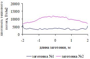 распределения температуры также имеют одинаковый вид для заготовок №1 и №2